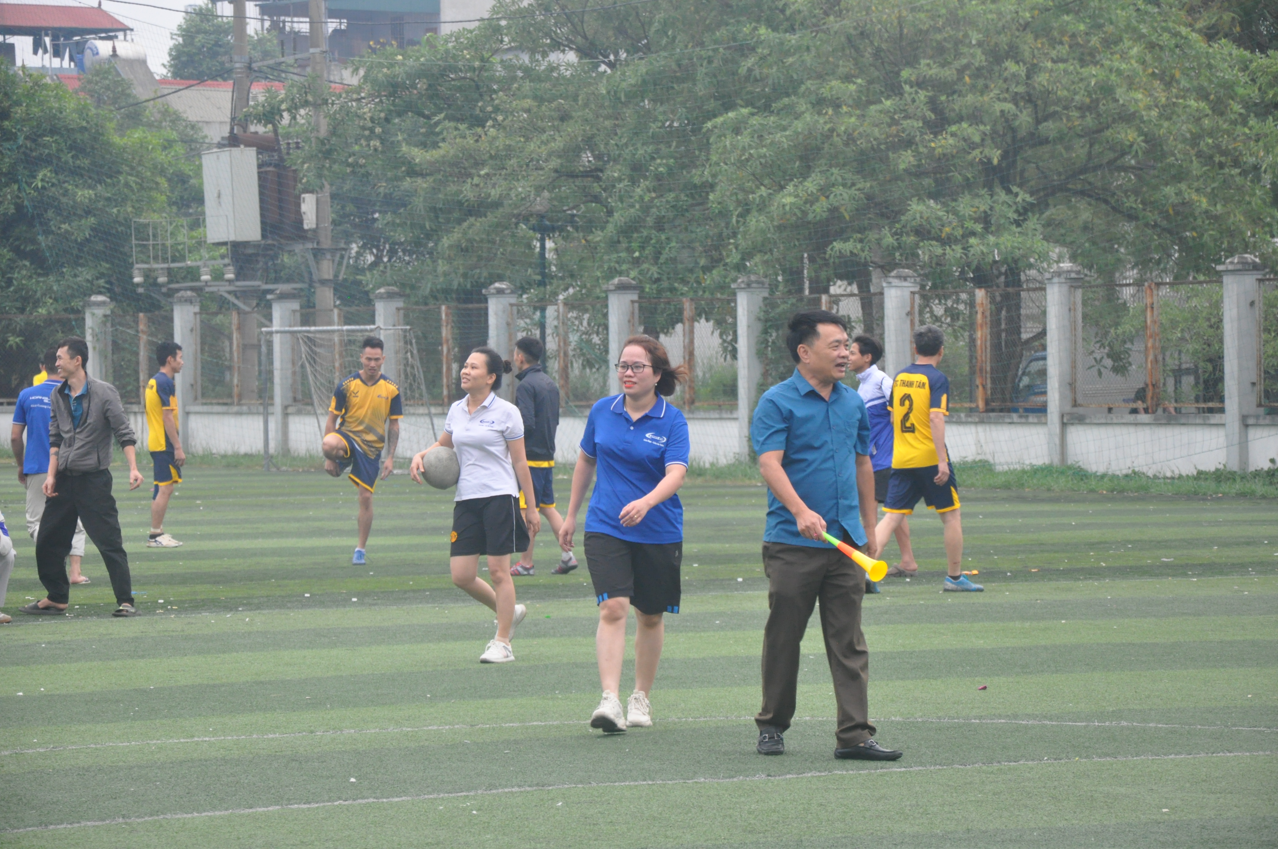 sau khi kết thúc trận đấu, Giám đốc cùng phó giám đốc đại diện công ty trao giải cho 2 đội bóng