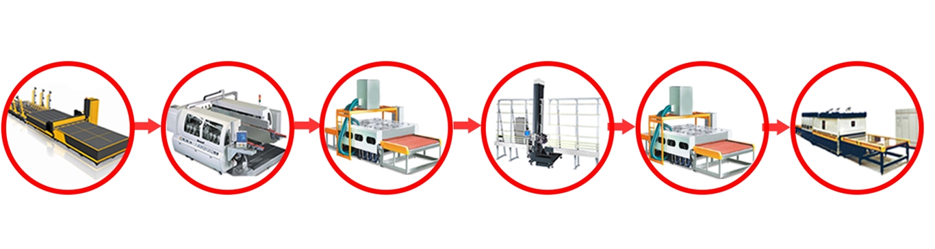 Do đặc tính kỹ thuật của kính cường lực là không thể gia công Cắt – Mài – Khoan sau khi đã được cường lực (tôi). Nên tất cả các sản phẩm bắt buộc phải gia công hoàn chỉnh trước khi đưa vào công đoạn cuối cùng là cường lực (tôi). Quy trình sản xuất kính cường lực bao gồm các bước sau:
